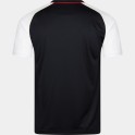 Le design du t-shirt se caractérise par une couleur noire dominante, agrémentée de traits rouges et blancs sur le torse, apportant une touche dynamique. Les épaules blanches ajoutent un contraste élégant, faisant de ce t-shirt un choix parfait pour les jeunes sportifs soucieux de leur apparence et de leur confort.