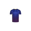 Le design du t-shirt se distingue par un fond bleu avec des traits en dégradé du bleu au rouge sur le devant, tandis que l'arrière est entièrement bleu, ajoutant une touche de modernité et d'élégance. La coupe unisexe garantit un ajustement confortable pour tous, hommes ou femmes. Ce t-shirt est parfait pour les athlètes en quête de performance et de style, que ce soit pour l'entraînement ou en compétition.