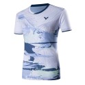 This t-shirt is specifically designed to provide optimal freedom of movement, allowing female athletes to focus fully on their performance. The Victor T-36000TD B t-shirt keeps the body dry and comfortable by quickly wicking away moisture. The design features a white front with blue patterns, while the back is fully blue, offering a modern and dynamic look.