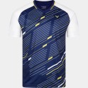 The t-shirt’s design features a navy base color, accented with white and yellow stripes on the chest, adding a dynamic touch. The white sleeves create an elegant contrast, making this t-shirt a perfect choice for athletes who care about both appearance and comfort.