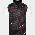 The t-shirt’s design features a black base color, accented with red and white stripes on the chest, adding a dynamic touch. The white shoulders create an elegant contrast, making this t-shirt a perfect choice for athletes who care about both appearance and comfort.