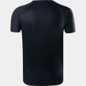 The t-shirt’s design features a black base, accented with blue and red patterns on the front. The back is entirely black, adding a touch of sobriety and elegance, perfect for athletes who care about both appearance and comfort.