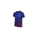 The t-shirt’s design features a blue background with gradient lines from blue to red on the front, while the back is entirely blue, adding a modern and elegant touch. The unisex cut ensures a comfortable fit for everyone, men or women. This t-shirt is perfect for athletes looking for performance and style, whether for training or competition.